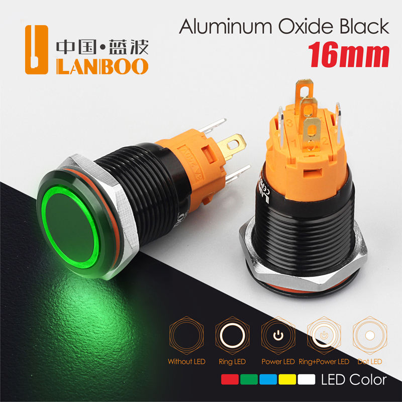 LANBOO 16mm IP67 Metal Autoblocante o Autoreinicio 1NO1NC con interruptor pulsador iluminado bicolor/tricolor
