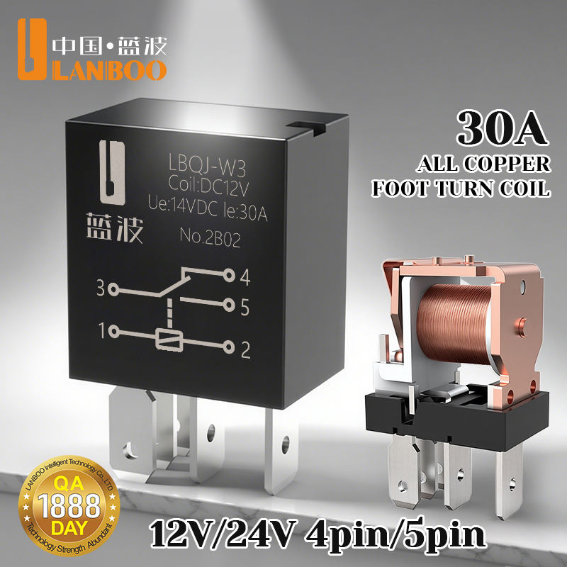 LANBOO-Relé automático violeta 30A, 12V/24V 100K, ciclos eléctricos, contactos AgSnO2 completa con bobina de cobre, modificación de coche de 4/5 pines