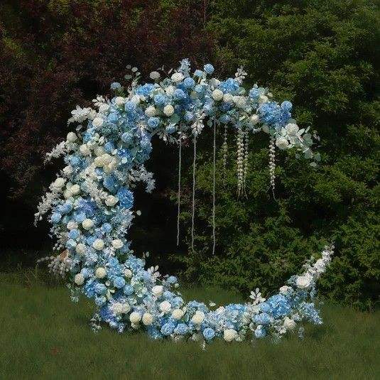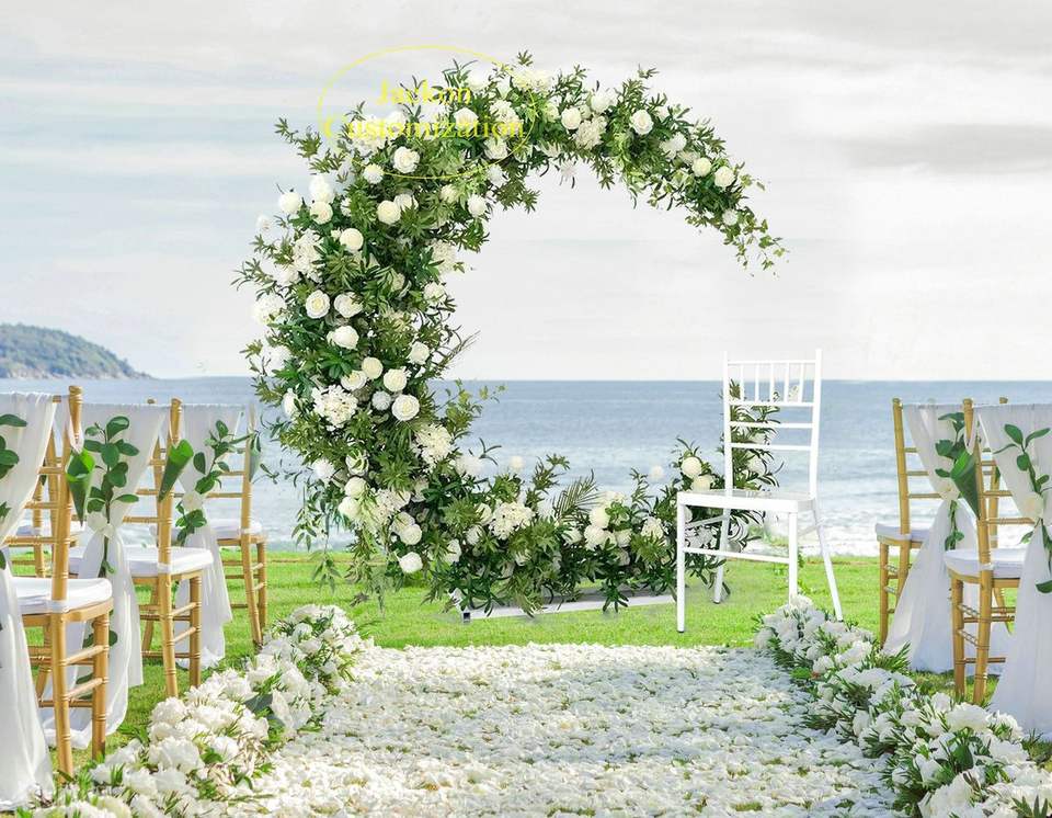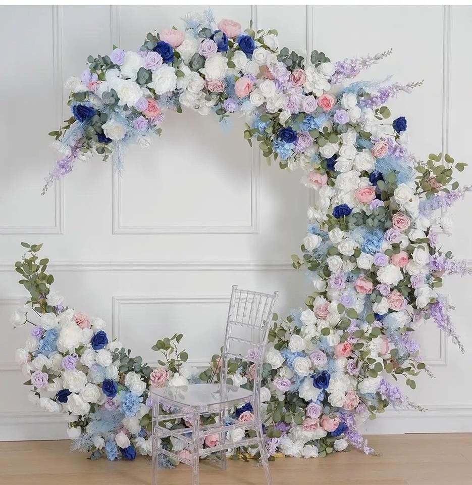 Arco de Flores Artificiales en Forma de Luna Personalizado LANJO, Soporte para Flores, Fondo para Bodas, Decoración Floral en Forma de Media Luna para Compromisos