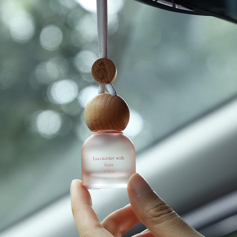 LANJO Elegante Ambientador de Coche Portátil y Ligero de Vidrio, Mini Ambientador Colgante Recargable con Aceite Esencial, Aroma Duradero y Natural
