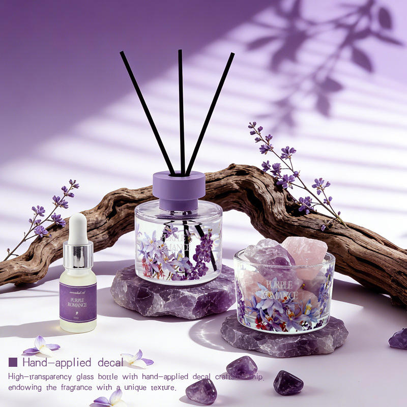 Set de Regalo de Aromaterapia LANJO Morado con Piedras Difusoras, Fragancia sin Llama, Aceite Esencial Premium, Adorno para Decoración del Hogar