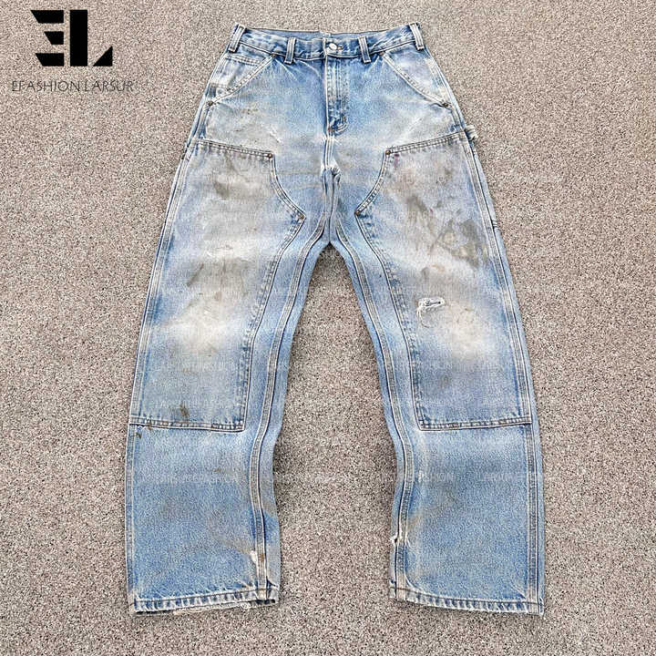 Tela vaquera pesada: La tela vaquera pesada asegura que los pantalones sean resistentes y duraderos, ideales para entornos de trabajo exigentes.