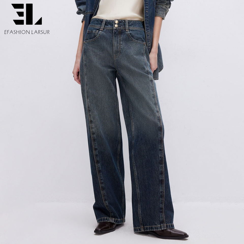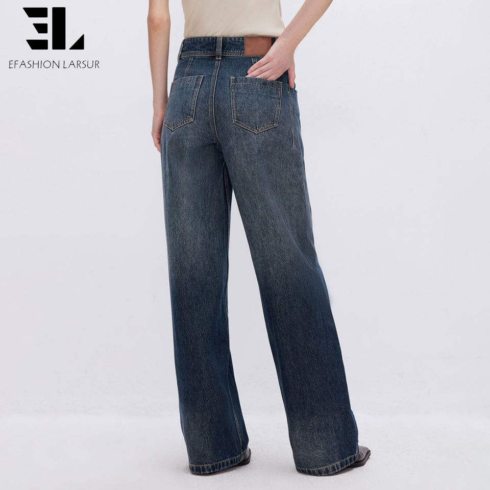 Pantalones Vaqueros Holgados de Lyocell Suave y Ecológico de Fábrica Personalizada LARSUR, Pantalones de Mezclilla Rectos y Desgastados para Mujer