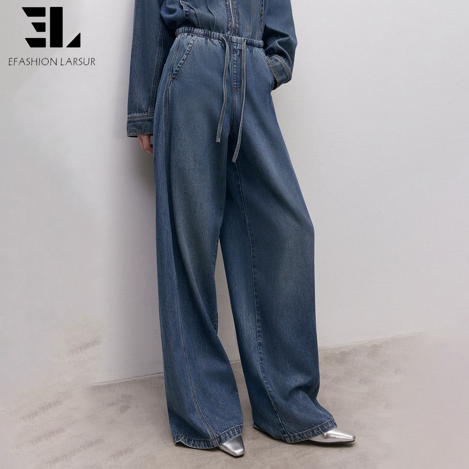 Pantalones Vaqueros Holgados de Lyocell Suave y Ecológico de Fábrica Personalizada LARSUR, Pantalones de Mezclilla Rectos y Desgastados para Mujer