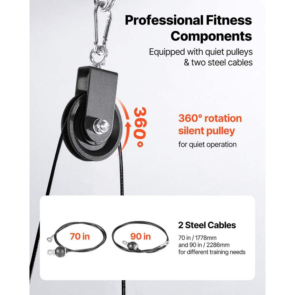 Sistema de Poleas LAT Lift con Manijas de Doble Agarre, Barra Corta, Poleas para Gimnasio en Casa, 1 Pieza, Accesorio de Cable de Acero