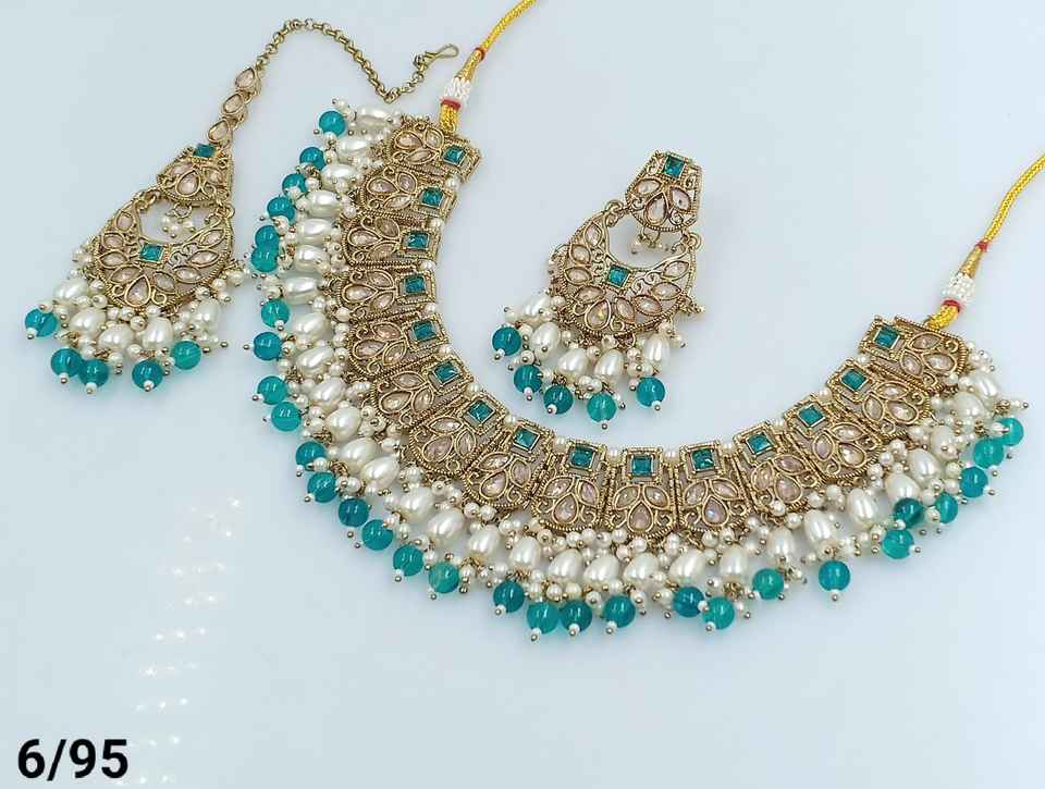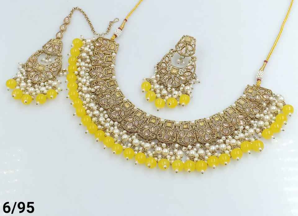 ÚLTIMO ANTIGUO MOTIPEARL & DROP COLLAR GARGANTILLA CHAPADO EN ORO A LA MODA CON CONJUNTO DE PENDIENTES MANGTIKKA Y CONJUNTO DE JOYERÍA MUJER