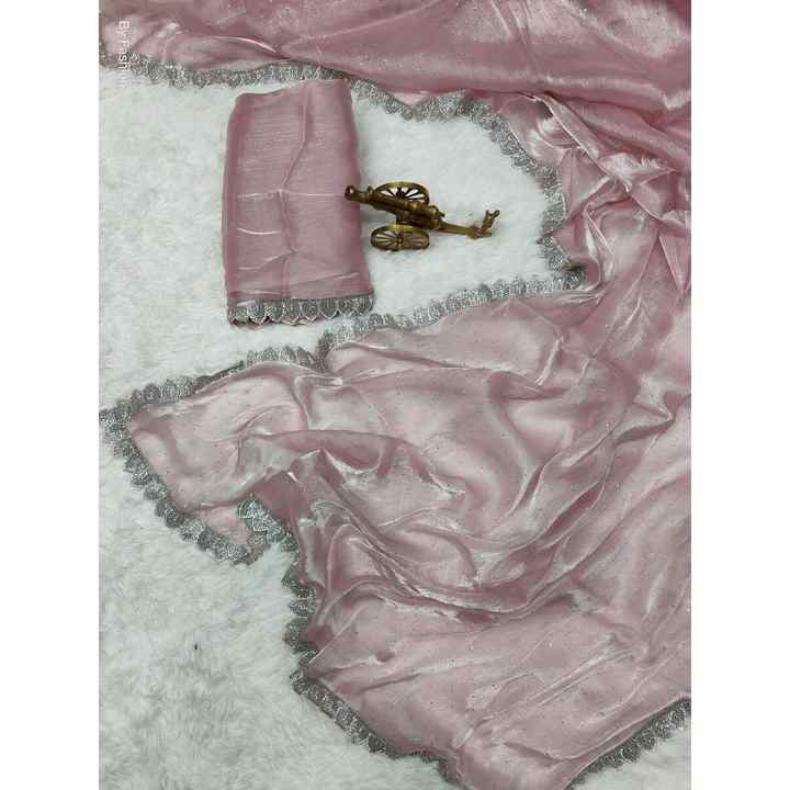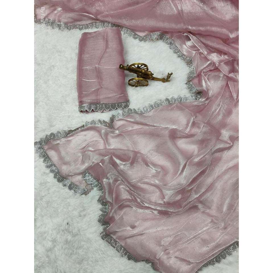 ÚLTIMO SAREE DE SEDA HECHO A MANO CON BLUSA DESCOSADA BEBÉ ROSA
