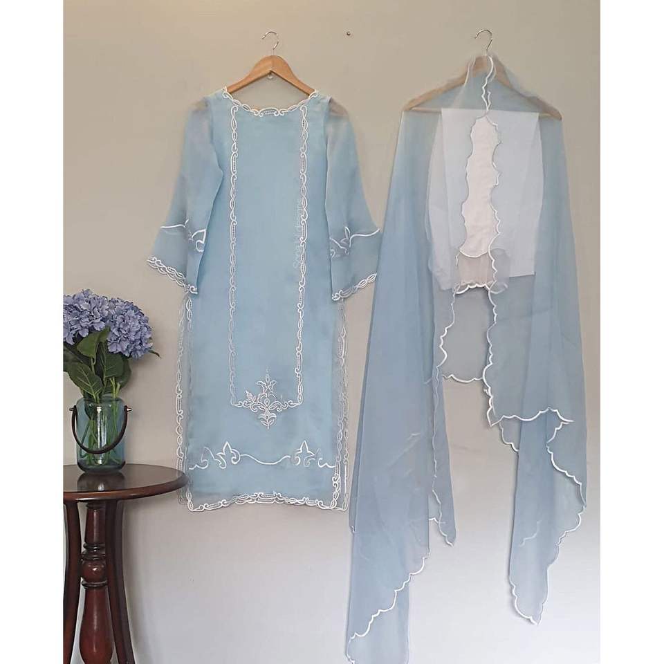ÚLTIMO MARAVILLOSO AZUL CIELO ORGANZA PURA INFERIOR SUPERIOR DUPATTA SKKY