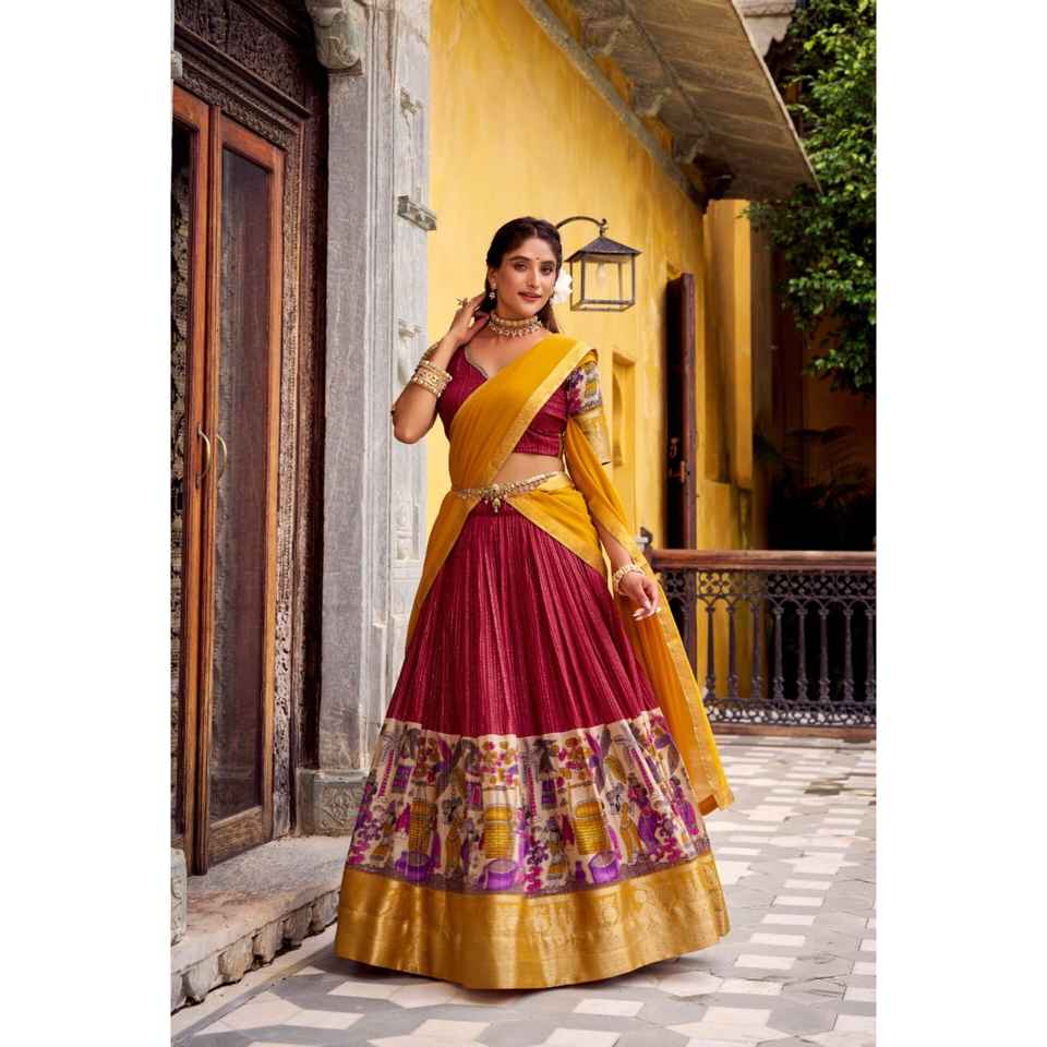 LANZAMIENTO NUEVO MODERNO FIESTA FESTIVA LEHENGA CHOLI TELA POLY CHANDERI KALAMKARI IMPRESIÓN ZARI TEJIDO TRABAJO REVERSIBLE TODAS LAS TEMPORADAS