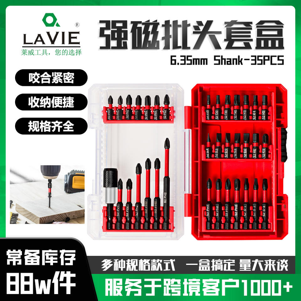Juego de brocas de impacto LAVIE, brocas magnéticas de acero de aleación S2 para destornillador eléctrico, cabeza Phillips de acero de tungsteno de alta dureza