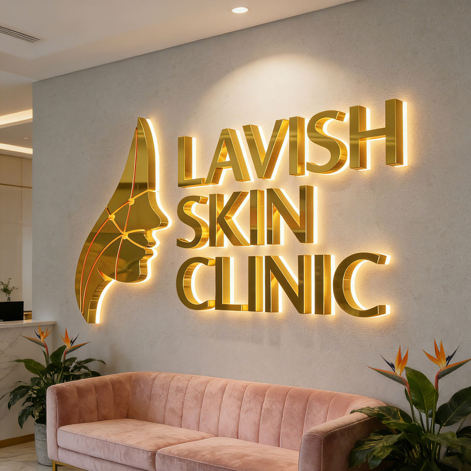 Letrero LED LC Personalizado, Letrero Luminoso con Retroiluminación de Acero Inoxidable Dorado, Letrero LED con Logotipo para Negocios, Recepción, Pared