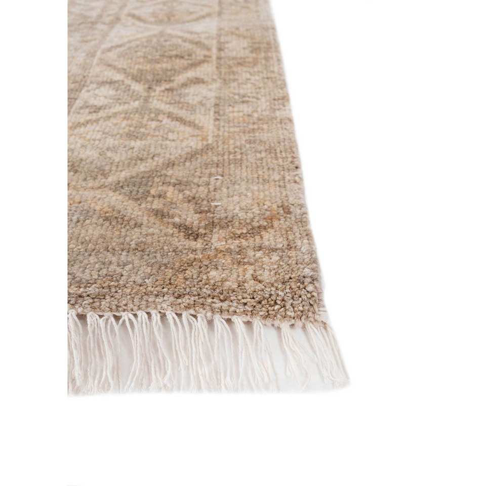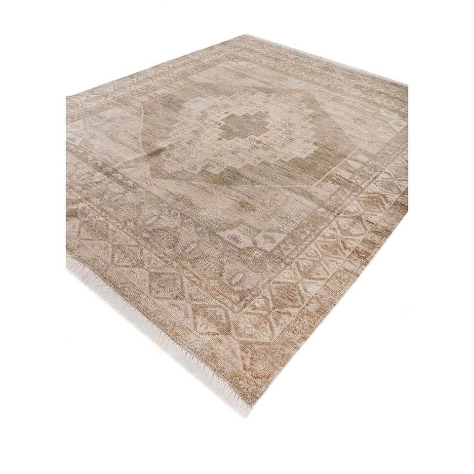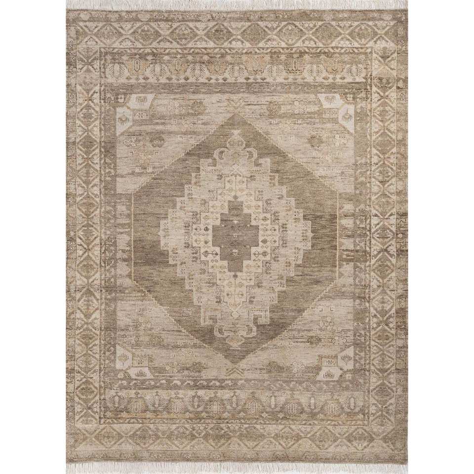 Alfombra de Lana Anudada a Mano LCA-904, Color Tomillo Beige Marrón, con Medallón, para Sala de Estar, Pasillo, Entrada, Dormitorio, Rectangular, Inspirada en un Rompecabezas