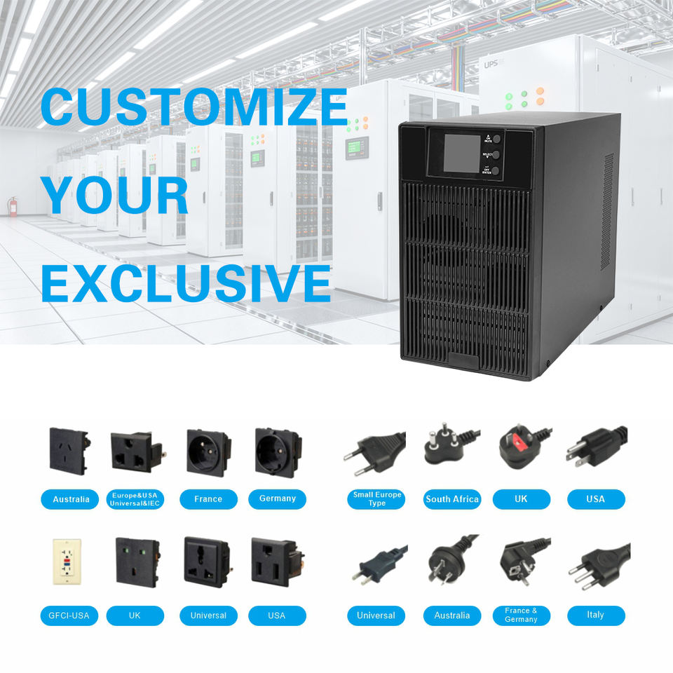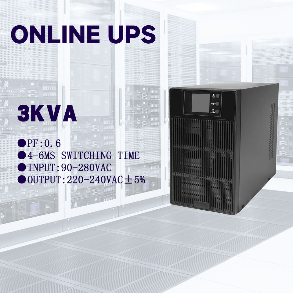 LCD doble conversión 1KVA 2KVA 3KVA 5KVA 10KVA onda sinusoidal pura en línea fuente de alimentación ininterrumpida UPS para computadora