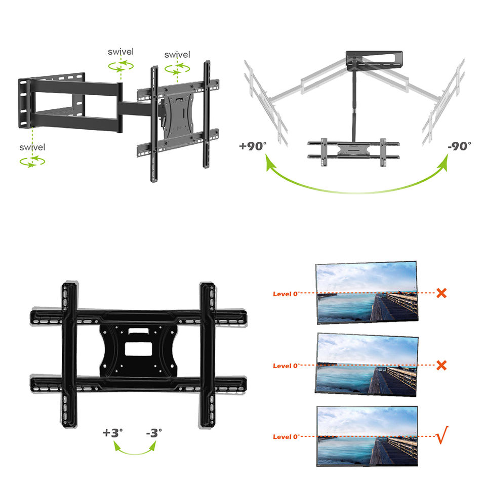 Panel plano LCD de 32 pulgadas, montaje de Tv giratorio de 180 grados, 725mm, brazo largo, Max VESA, 600x400mm, montaje en pared