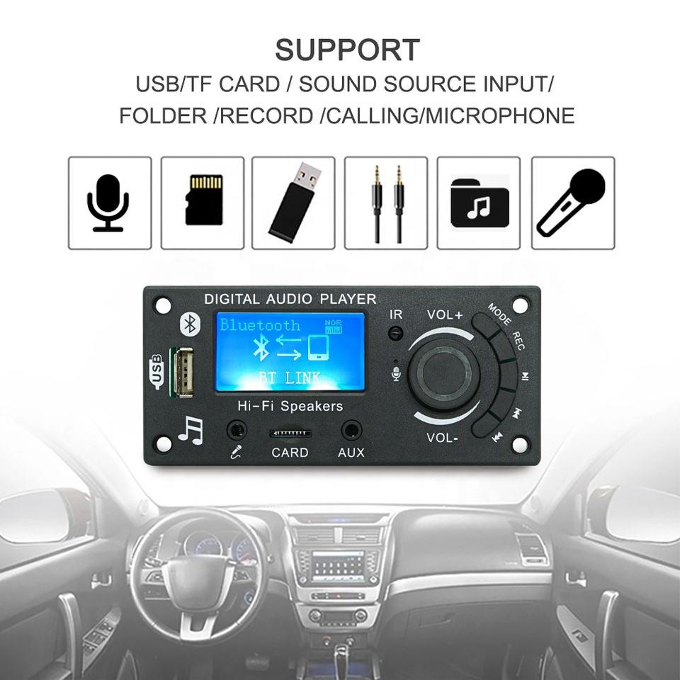 Pantalla LCD con Letras de Canciones, Altavoz de Audio para Automóvil de 12 V, Micrófono, Grabación de Llamadas, Decodificador MP3, Módulo Reproductor de MP3 con Bluetooth