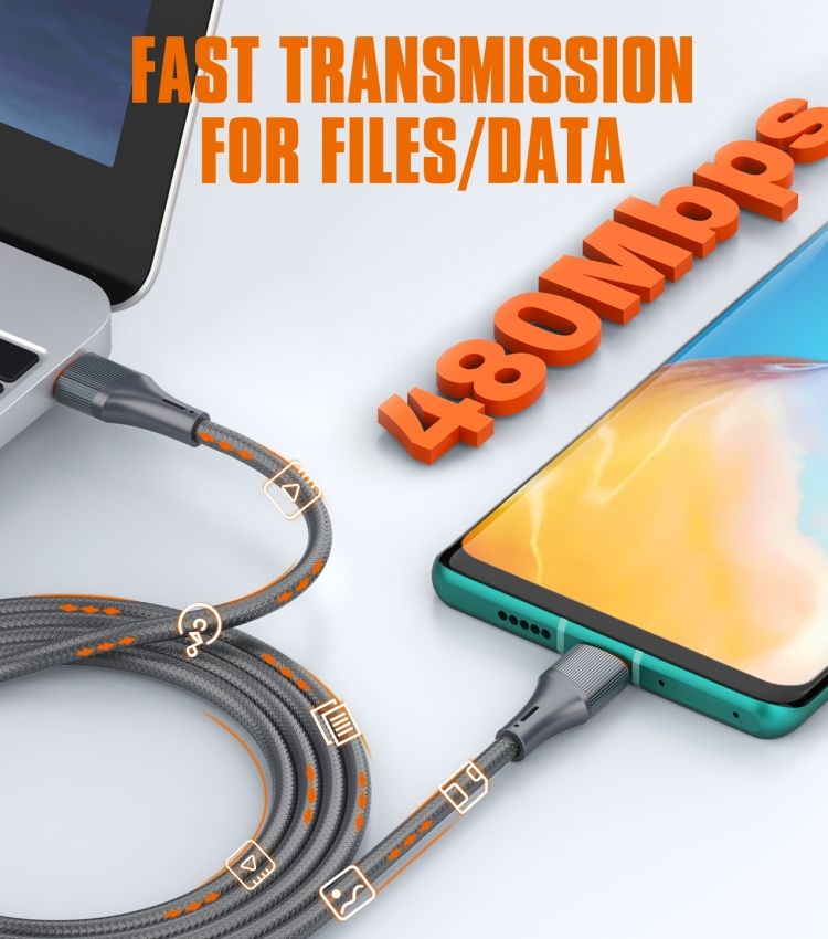 Escudo trenzado: Reduce la interferencia electromagnética, asegurando una transferencia de datos y experiencia de carga estables y consistentes.