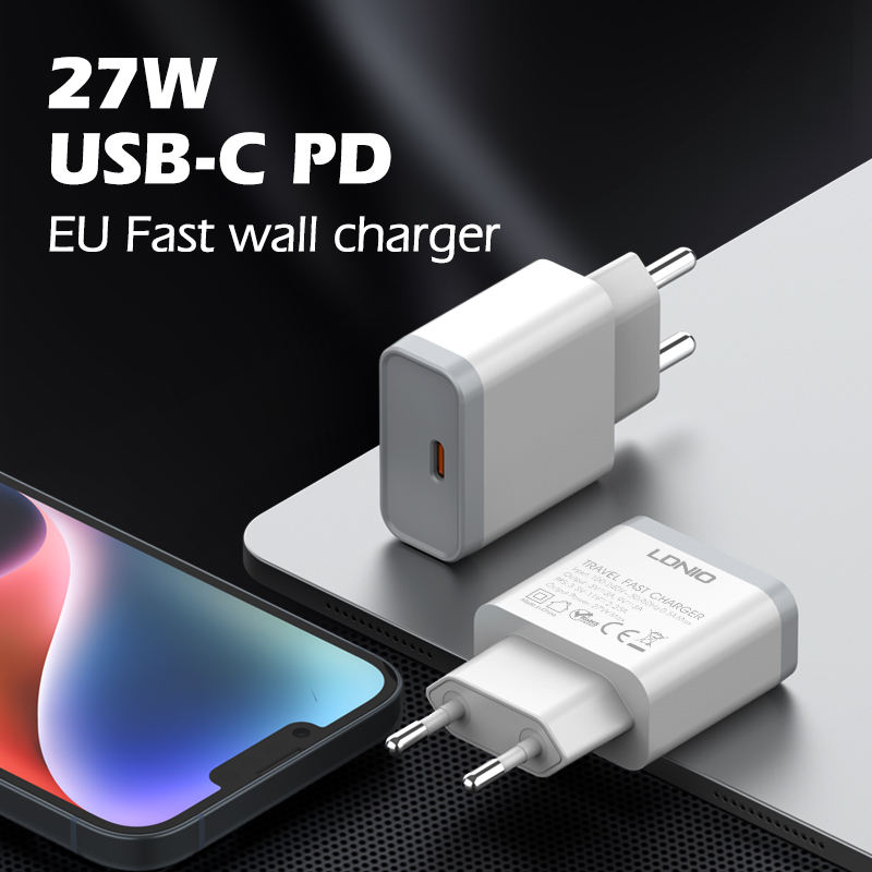 Cargador Portátil Tipo-C LDNIO Q122 con Logotipo Personalizado, 27W, Carga Rápida, Enchufe Europeo, Certificado CE, PD 3.0 para Teléfono