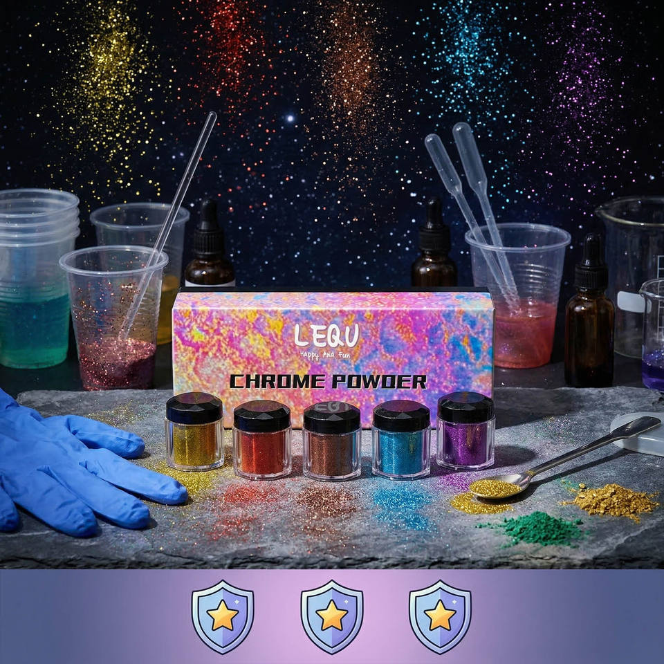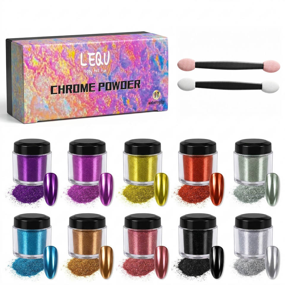 LE.Q.U Polvo de Pigmento con Efecto Espejo Mágico Superbrillante de 10 Colores para Arte de Uñas y Manualidades con Resina
