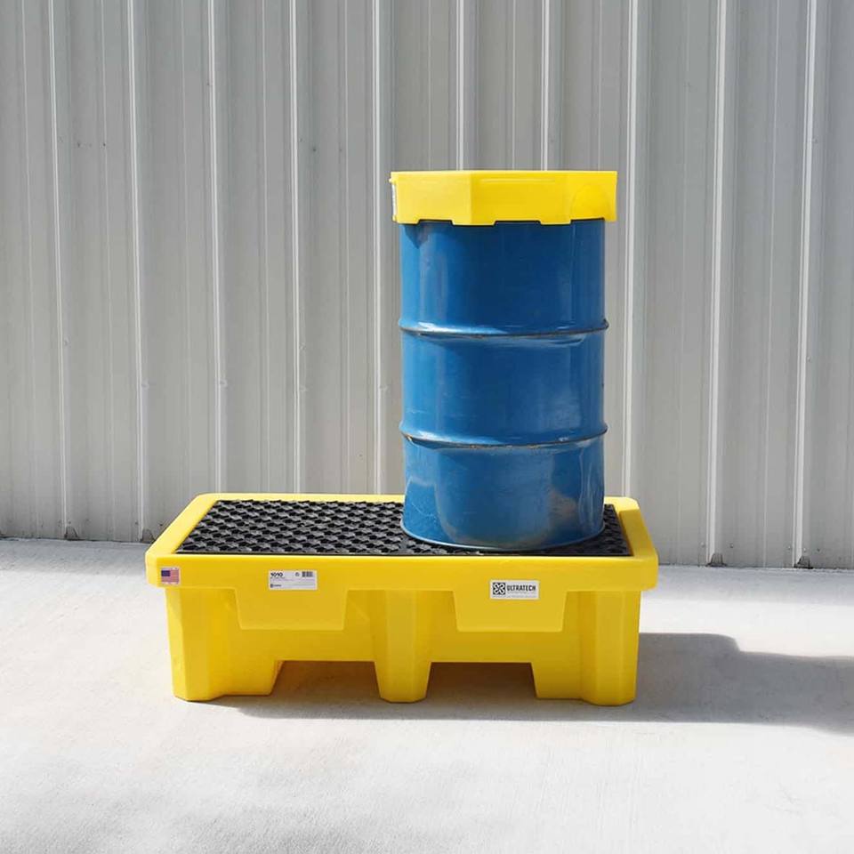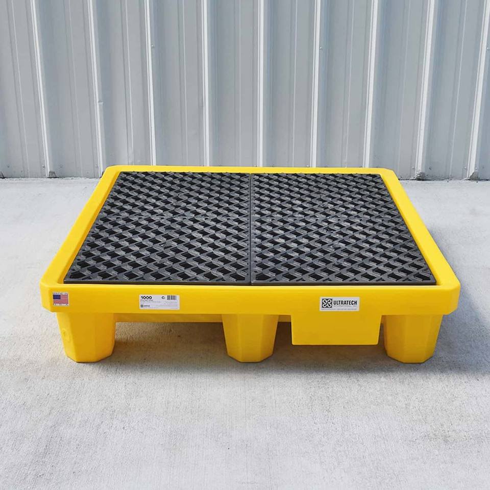 Paletas de Plástico LEADLOONG de Una Sola Cara, Tipo Plataforma, para Cuatro Bidones de Aceite, a Prueba de Fugas, 1300*1300*150mm, Entrada Bidireccional para Plantas Químicas