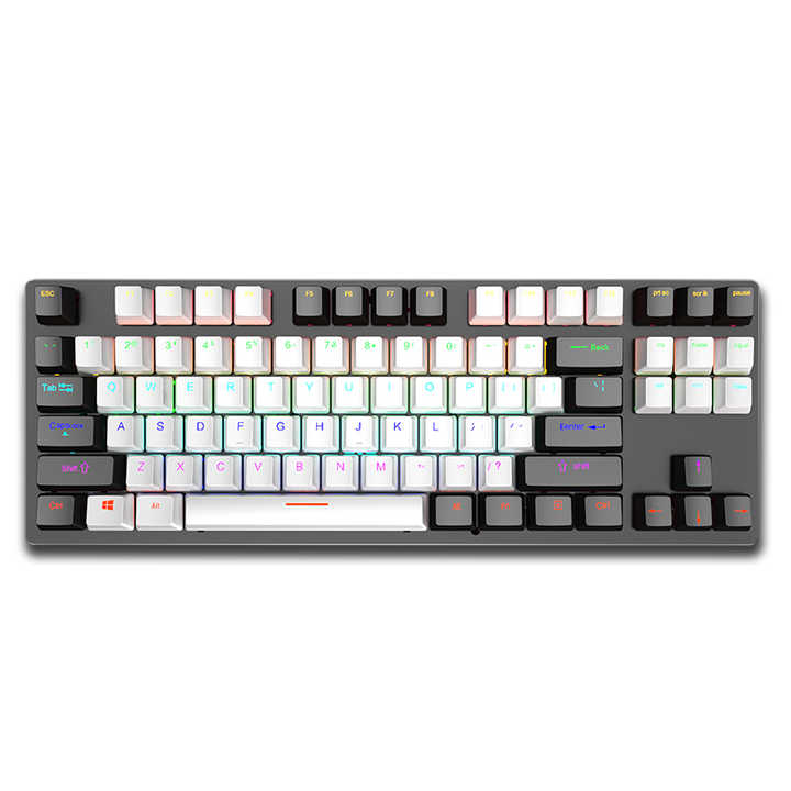 Teclado Mecánico para Juegos LEAVEN K550 de 87 Teclas con Eje Azul, Nuevo Diseño con Teclas Intercambiables en Caliente, Negro y Blanco