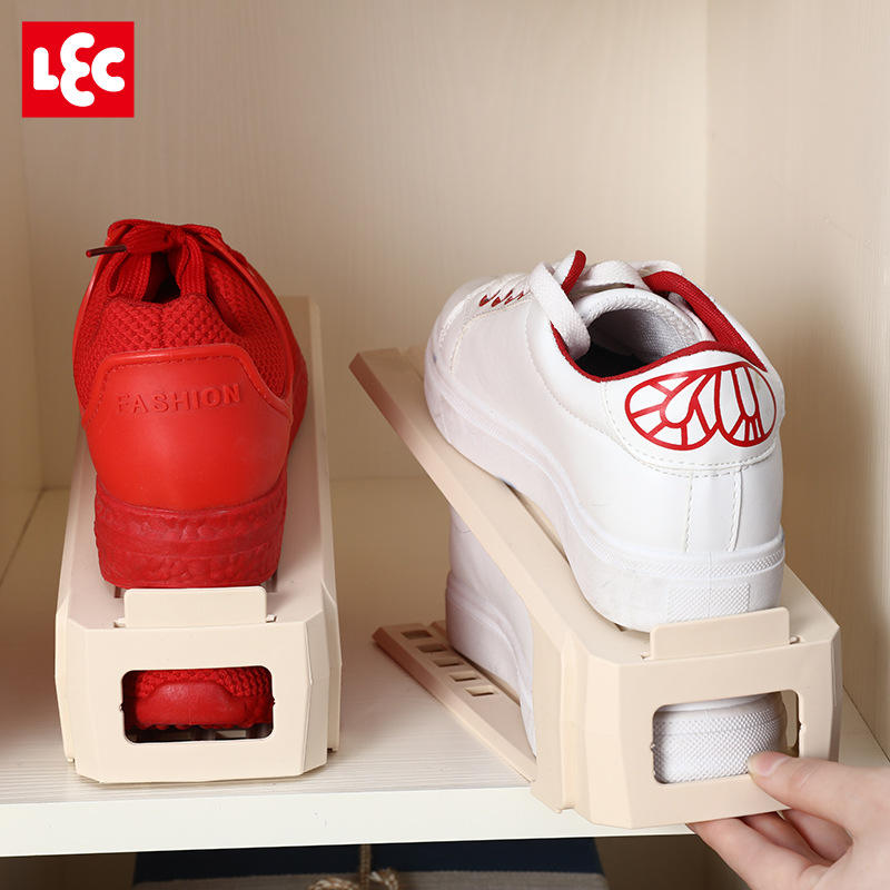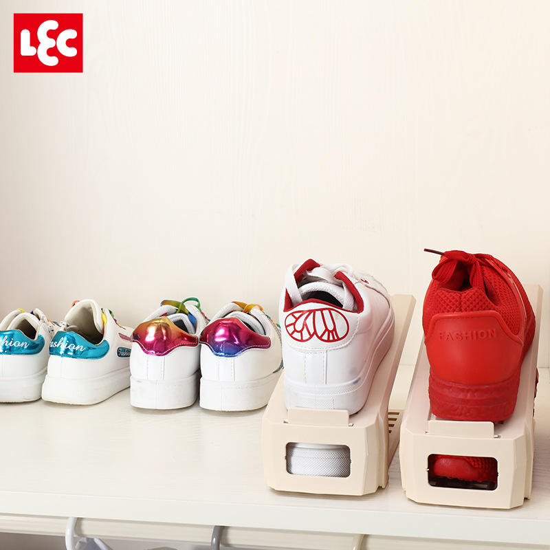 LEC - Organizador de almacenamiento de plástico de doble capa para zapatos, ahorro de espacio, para el hogar, paquete de 2