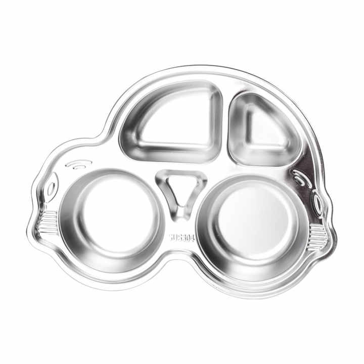 Bandeja de Comida Dividida de Acero Inoxidable LECOS, Plato de Comedor con Forma de Coche para Cafetería Escolar y Uso Diario