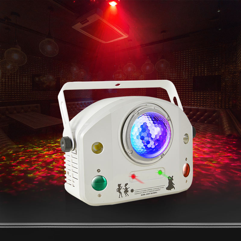LED 4 en 1 Patrón de agua estroboscópico láser etapa luz Disco fiesta luz Club estroboscópica Bola de discoteca giratoria