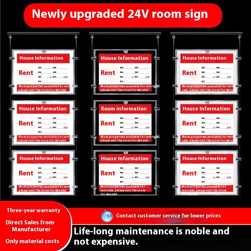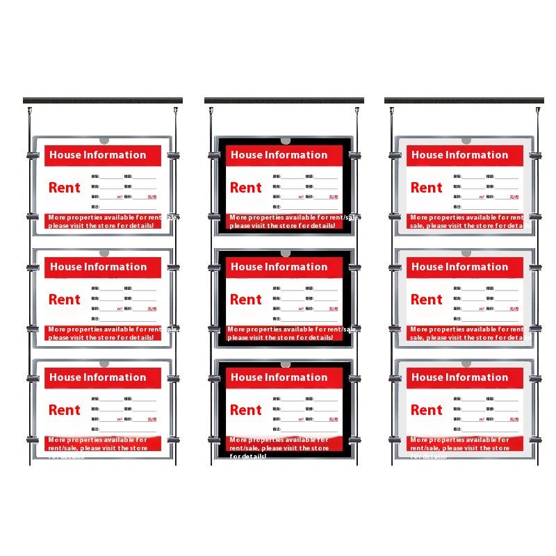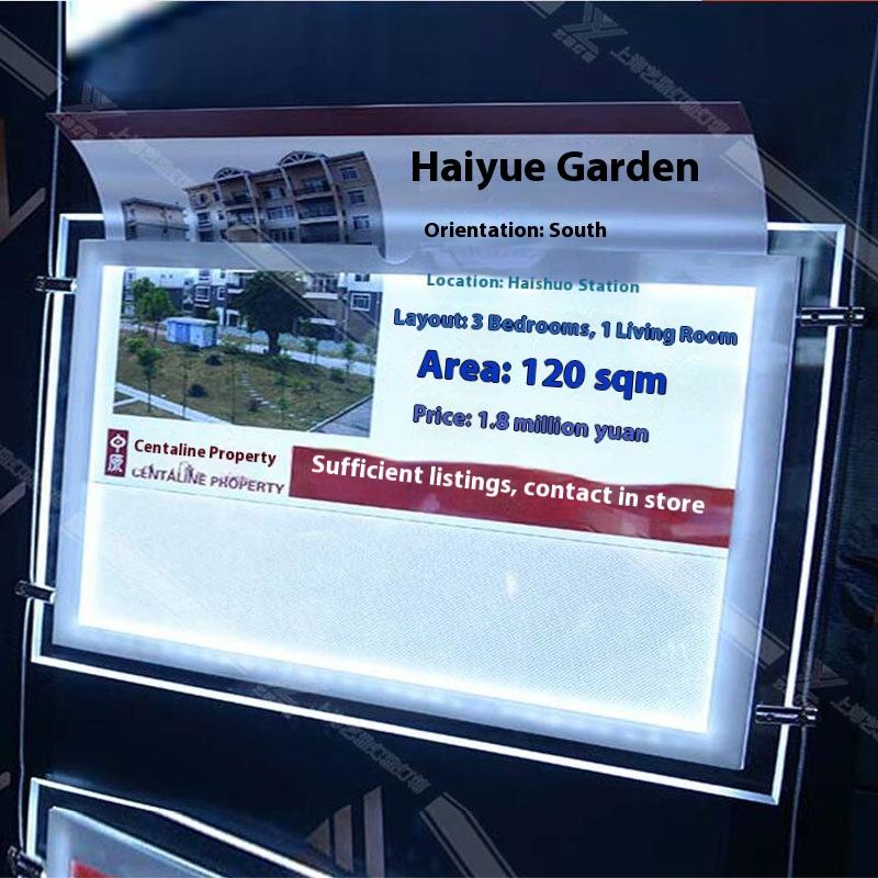 Caja de luz de cristal acrílico LED, tablero de exhibición de publicidad de tamaño A4, característica magnética luminosa para colgante de ventana de agente inmobiliario