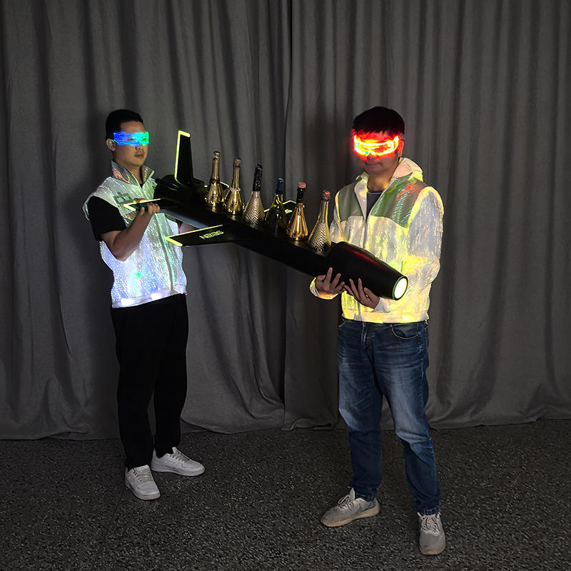 Estante para vino LED con forma de avión, 8 botellas, decoración de barra de hierro, soporte iluminado para champán para fiestas