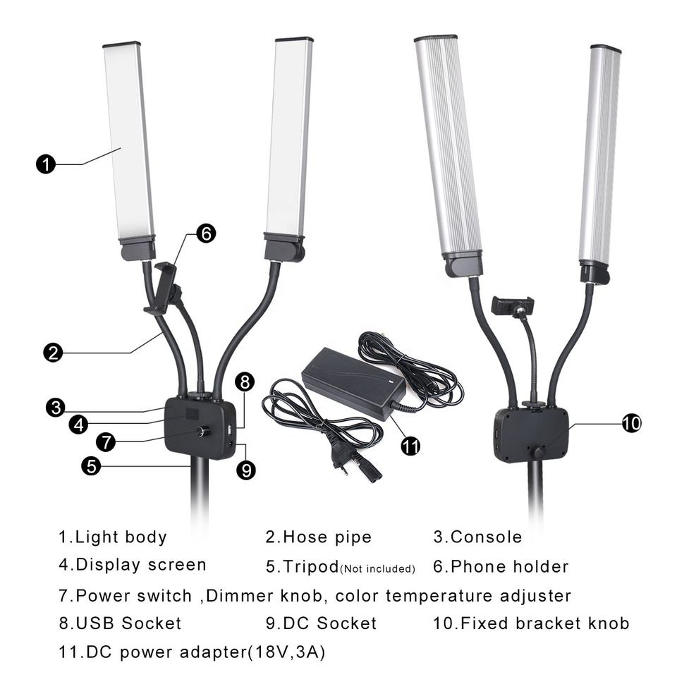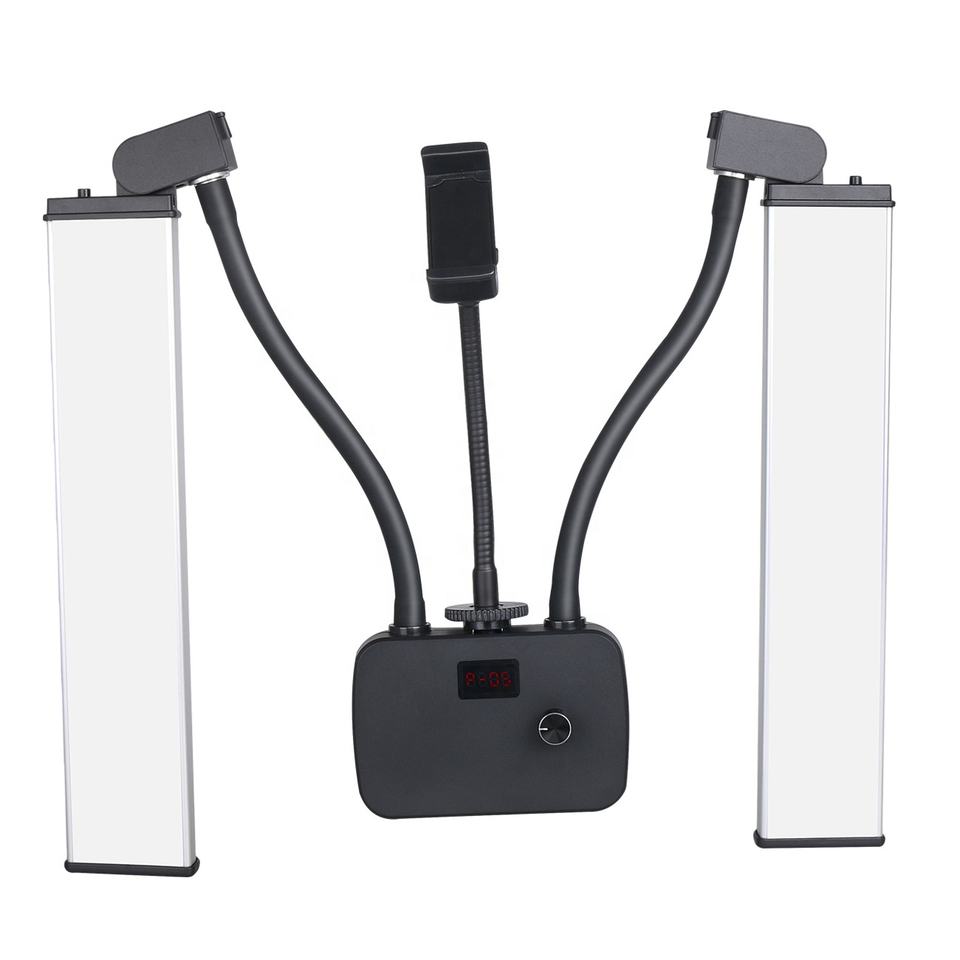 Salón de belleza LED Lámpara de pestañas de doble brazo Lámpara de maquillaje de dos tubos para pestañas con clip de teléfono para pestañas Ceja Grano Bordado Tatuaje