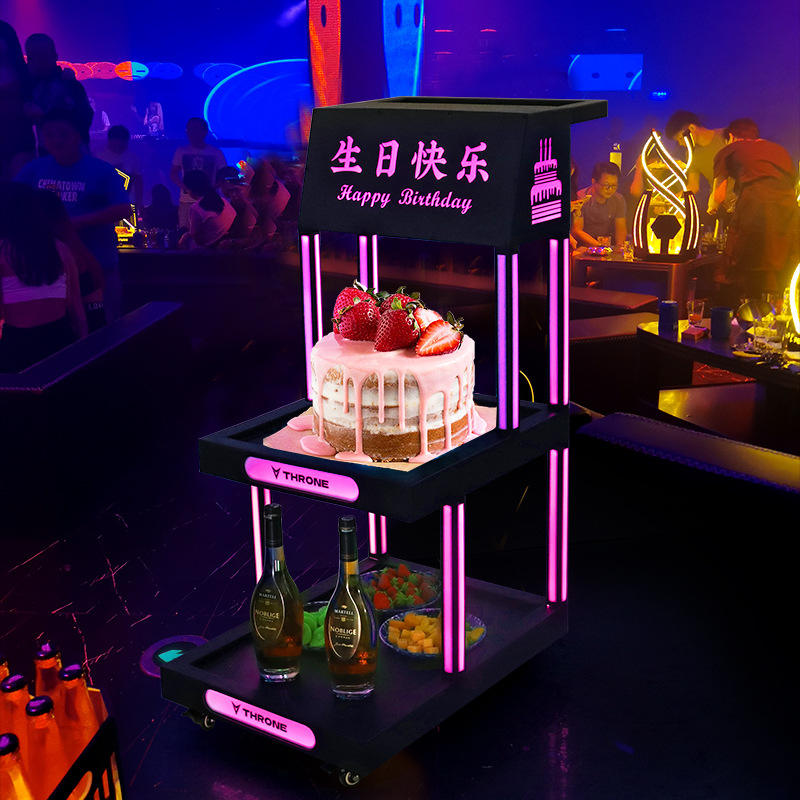 Carrito de Pastel LED de Doble Capa con Iluminación para Decoración de Fiestas de Cumpleaños, Bares, Clubes, KTV y Uso Comercial