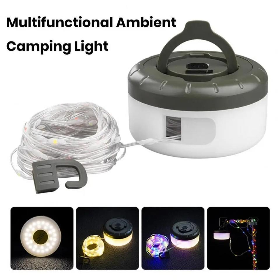 Linterna LED para acampar con cuerda 2 en 1, luz de camping recargable, luz impermeable para tienda de campaña con 5 modos de iluminación para acampar