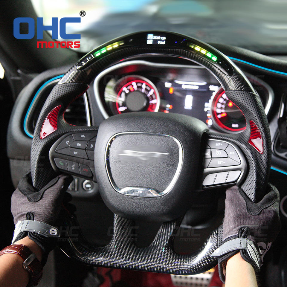 Volante LED de fibra de carbono para coche, volante para dodge Challenger Charger Jeep SRT 2015