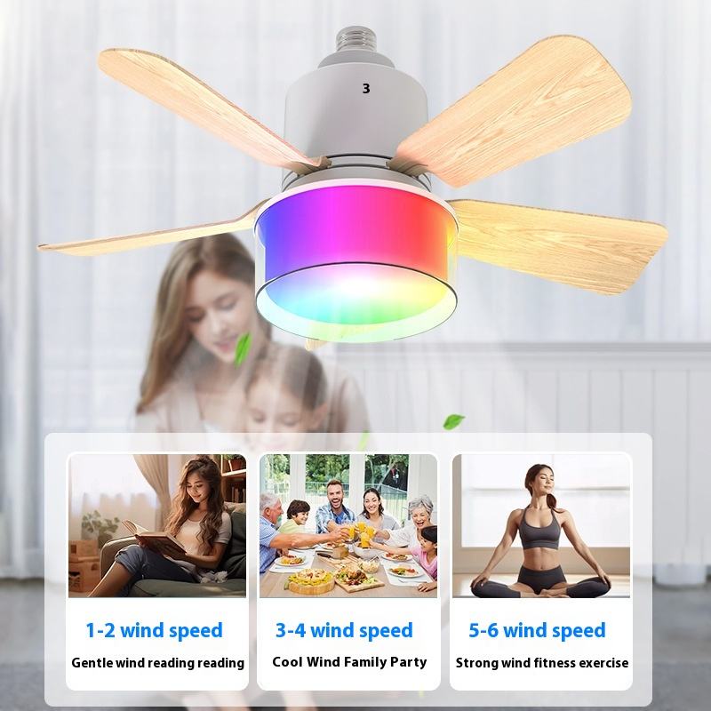 Ventilador de Techo LED E27 con Control Remoto, Regulable, 6 Velocidades Ajustables, Apto para Sala de Estar, Estudio, Uso Doméstico