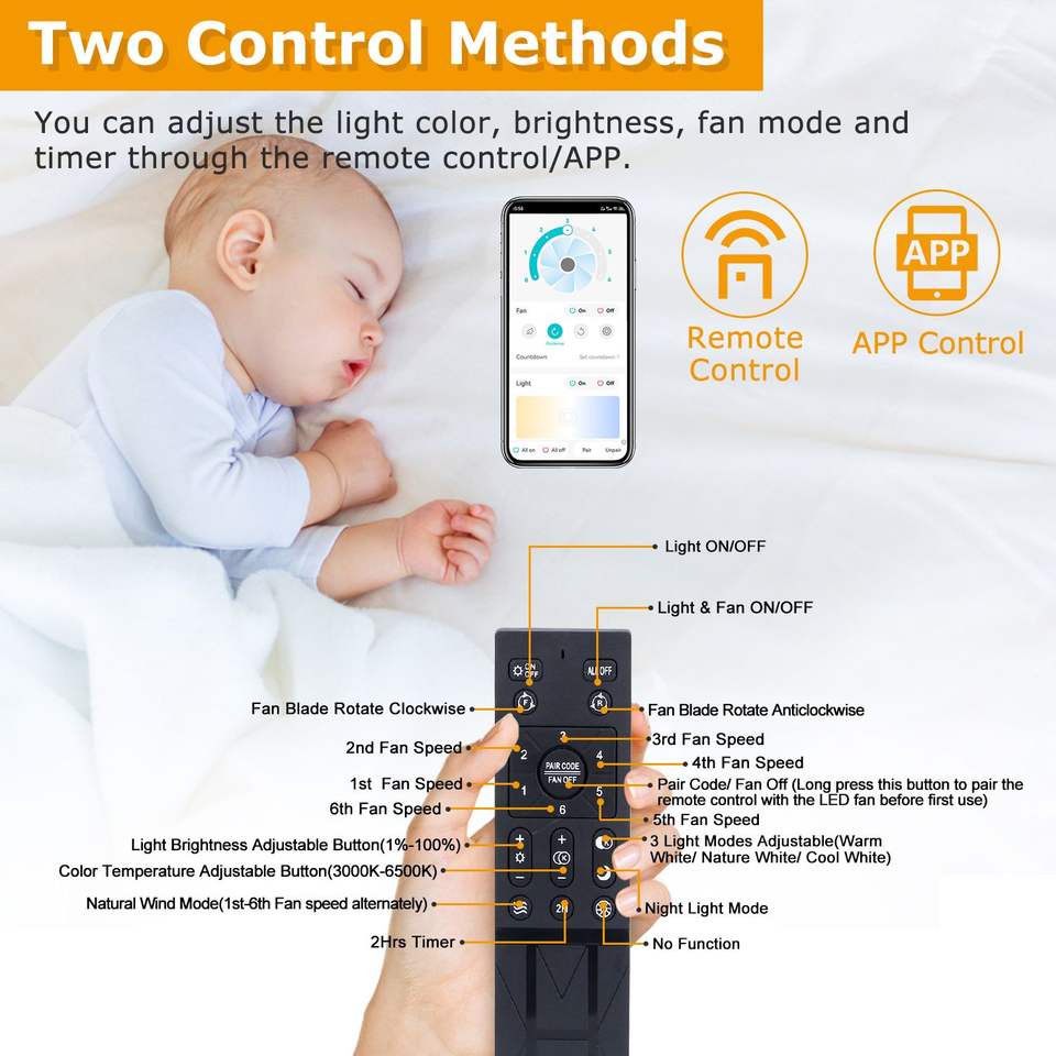 Ventilador de Techo LED con Lámpara Colgante de 60W, 19.7 Pulgadas, 6 Velocidades, Ajuste de Color de Luz de 3000-6500W