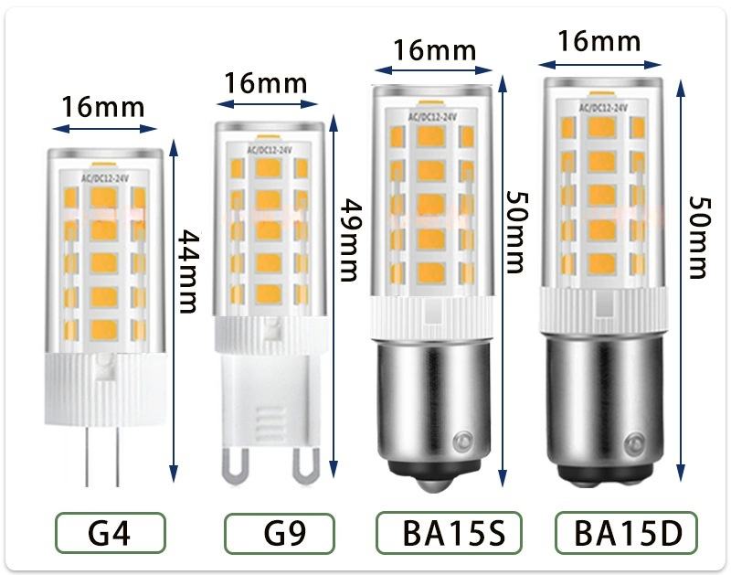 Tipo de base:G4, G9, E11, E14, E17, E12, T10, BA15S, Por BA15D