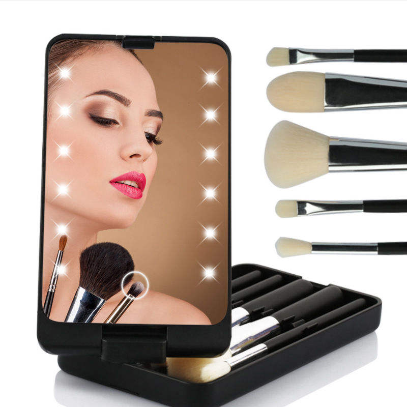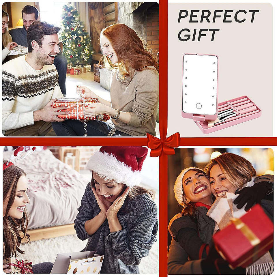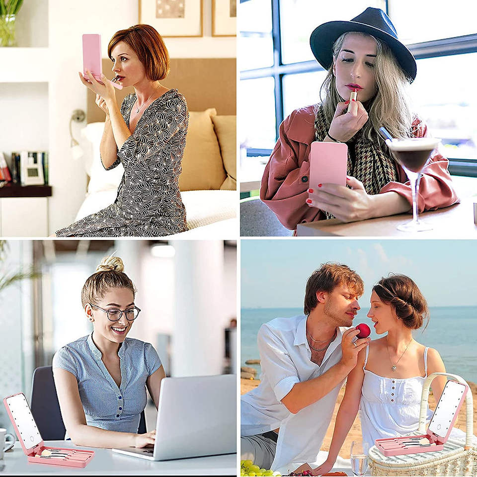 Espejo de Maquillaje LED de Escritorio, Espejo Cosmético Compacto de Una Sola Cara, Rectangular, Plegable, Portátil, con Función de Aumento