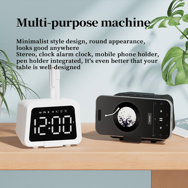 Reloj Despertador Digital LED con Altavoz, Luz Nocturna RGB, Pantalla Grande, Alarma Doble, Diseño con Soporte para Teléfono y Bolígrafo