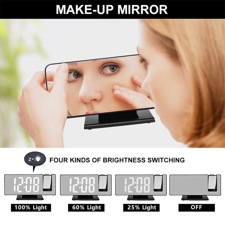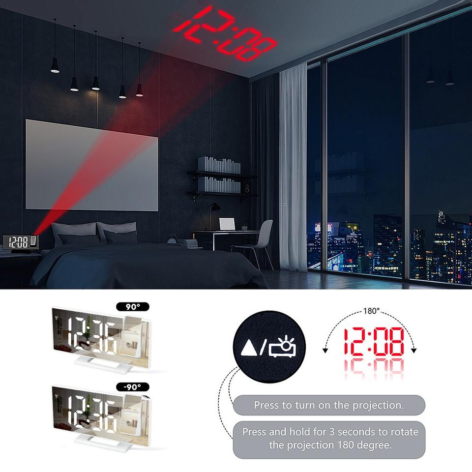Reloj Despertador Digital LED Inteligente con Proyector, Reloj Electrónico de Escritorio USB con Proyección de Hora de 180°, Función de Snooze