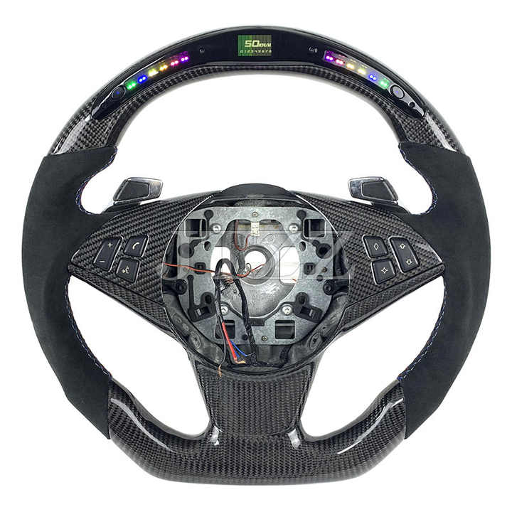 Volante de Fibra de Carbono y Gamuza Alcántara con Pantalla LED para BMW E60 E61 M5 E63 E64 M6 Interior de Coche Mejorado