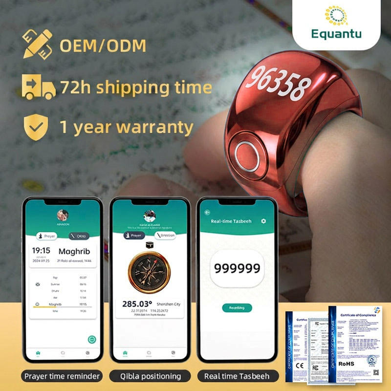 Anillo Zikr con Pantalla LED, Reloj Despertador Musulmán con Recordatorio de Azan, Control por Aplicación, Tasbih Inteligente, Reloj Despertador con Azan, Anillo Tasbih