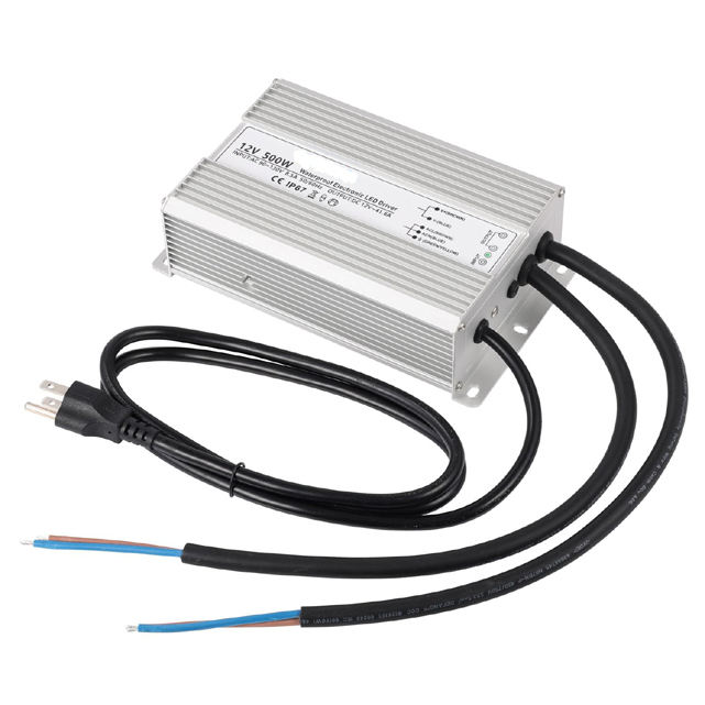 Controlador LED de 12V 500W, Fuente de Alimentación Impermeable, Transformador de Bajo Voltaje de 110V/130V CA a 12V CC 41.7A, IP67, para Iluminación Exterior de Hoteles