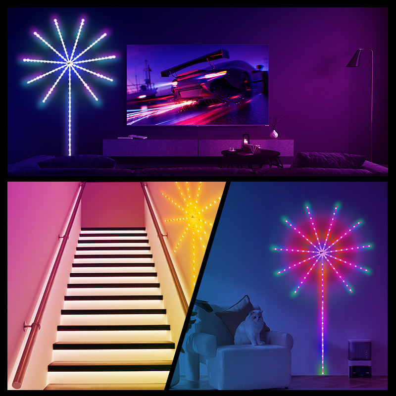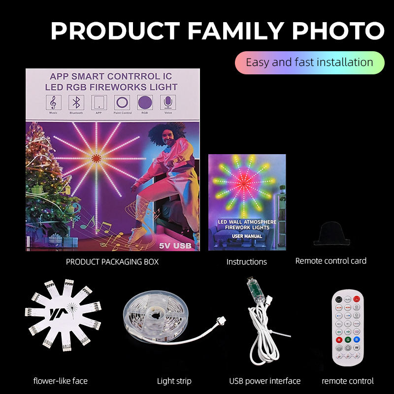Tira de luces LED de fuegos artificiales RGB 12V sonido reconocer música ritmo activado aplicación Digital Control casa fiesta evento luz decorativa