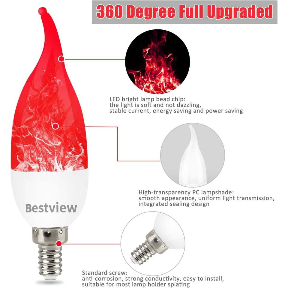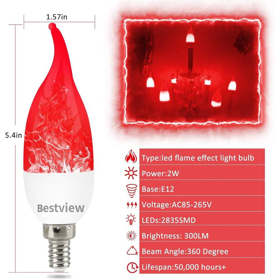 Bombillas LED con Efecto de Llama, 3 Modos, Base E12 para Lámparas de Araña, Decoración para Halloween