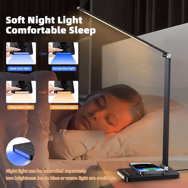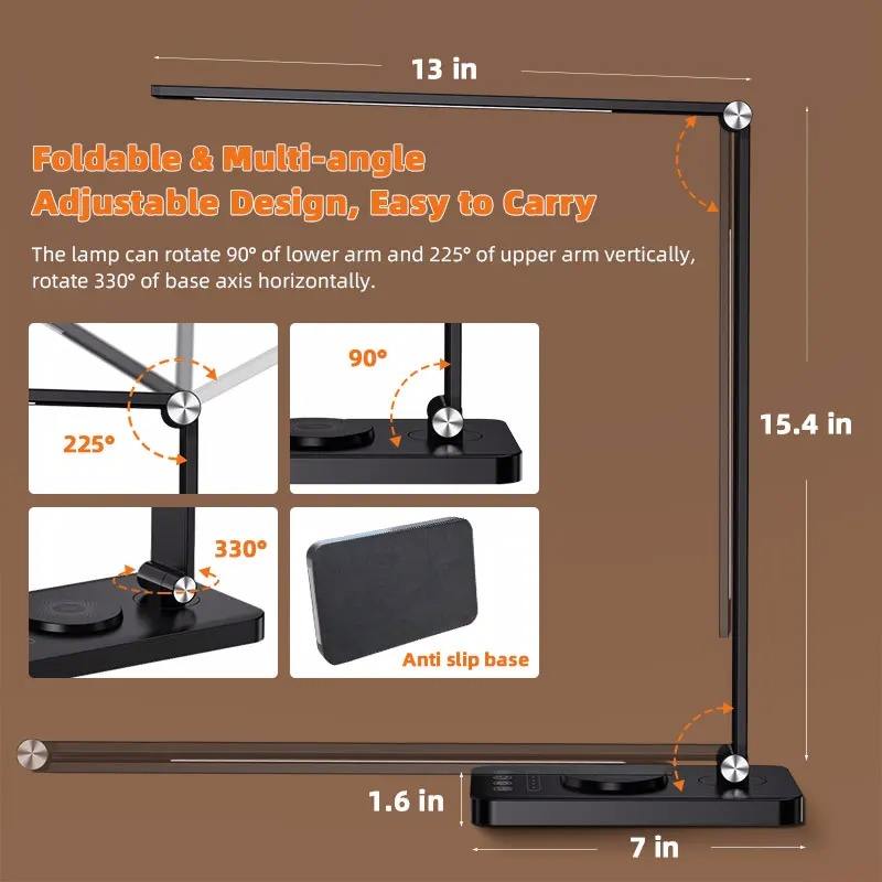 Lámpara de Escritorio LED Plegable con Carga USB, Control Táctil, Regulable, Protección Ocular, para Lectura, Estudio, Oficina, Dormitorio, Mesita de Noche