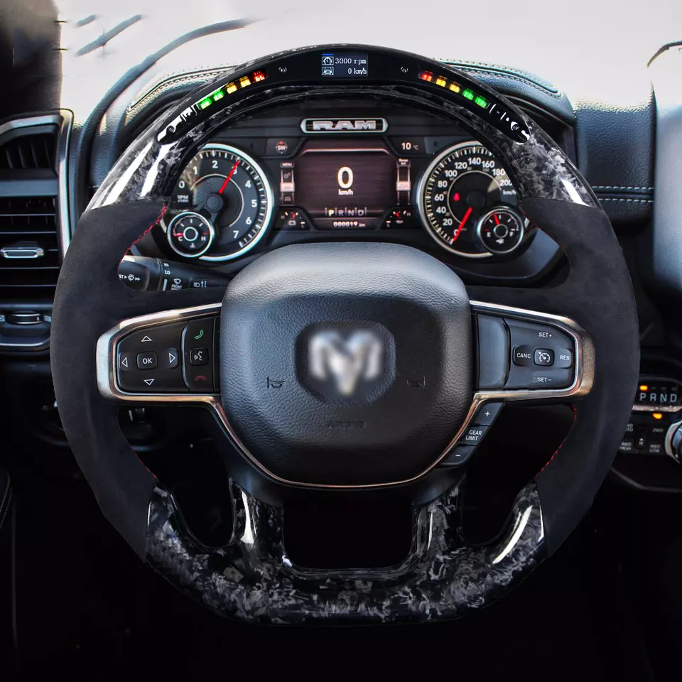 Volante de fibra de carbono de gamuza forjada LED para Dodge RAM TRX Rebel 1500 2500 2018-2022 volante de coche personalizado