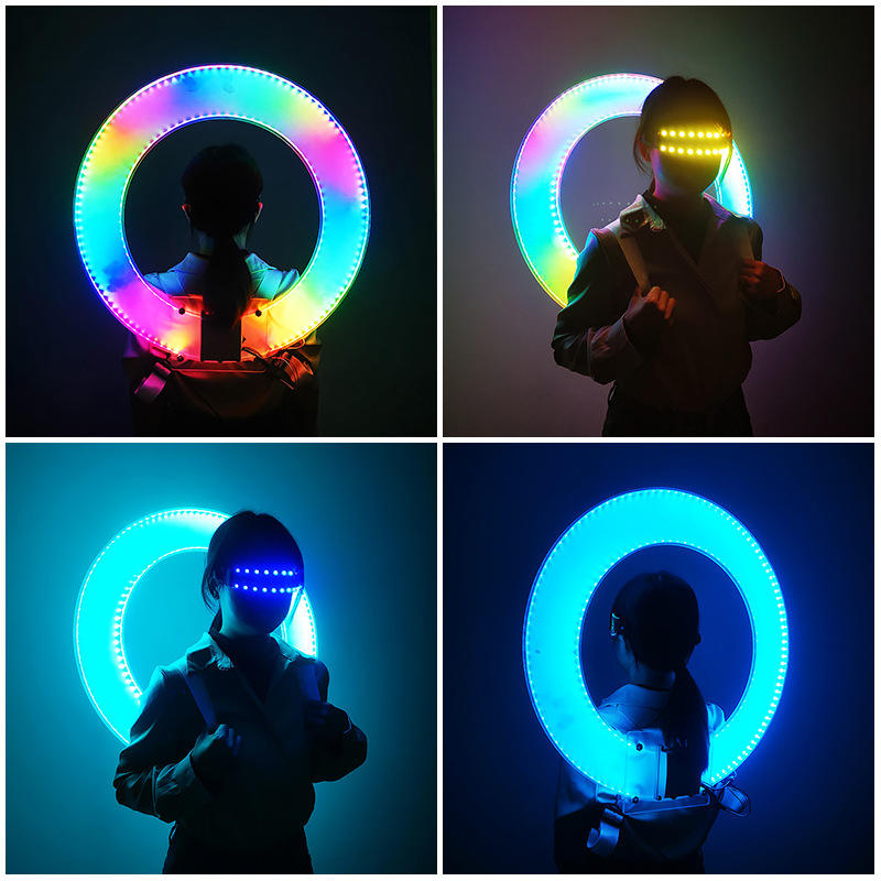 Mochila LED Brillante con Efecto Halo para Actuaciones en Escenario y Eventos Nocturnos, Material Acrílico