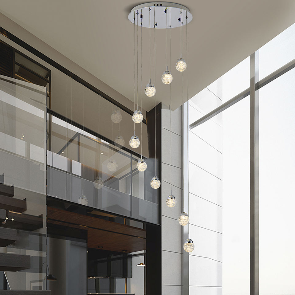 Luces colgantes LED, candelabro de bola de cristal grande, iluminación moderna para escaleras, luces colgantes para el hogar, comedor, sala de estar, dormitorio