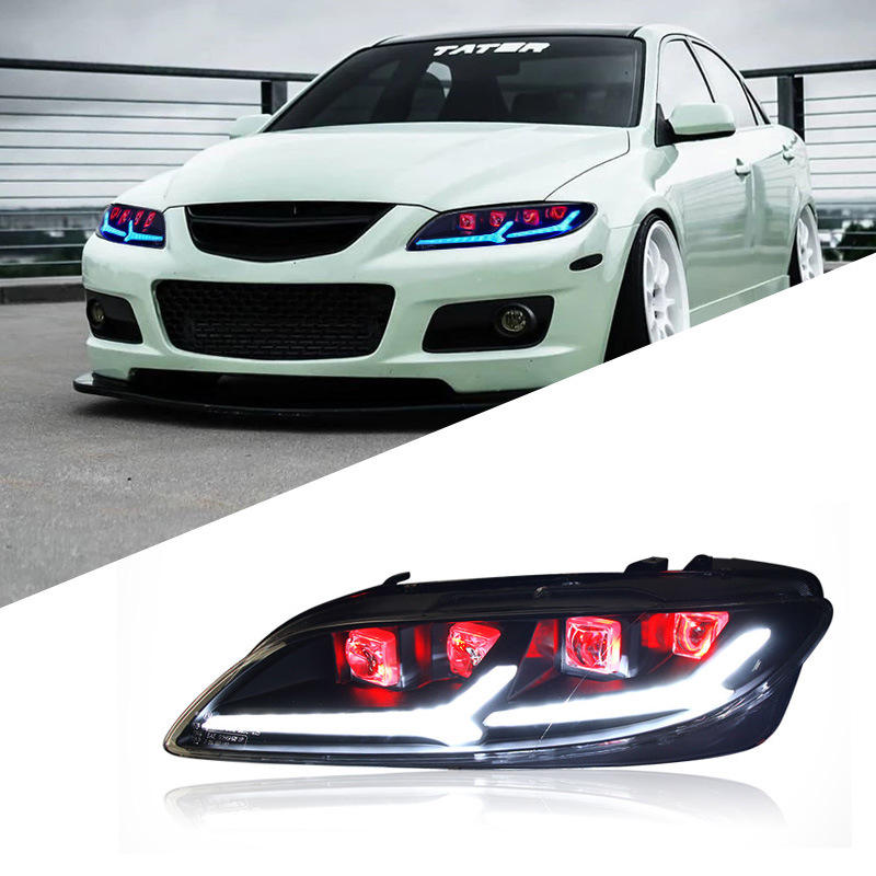 Conjunto de Faros LED 6000K 12V para Mazda6/Atenza 03-15 con Luz Diurna, Direccional Secuencial y Ojo de Ángel