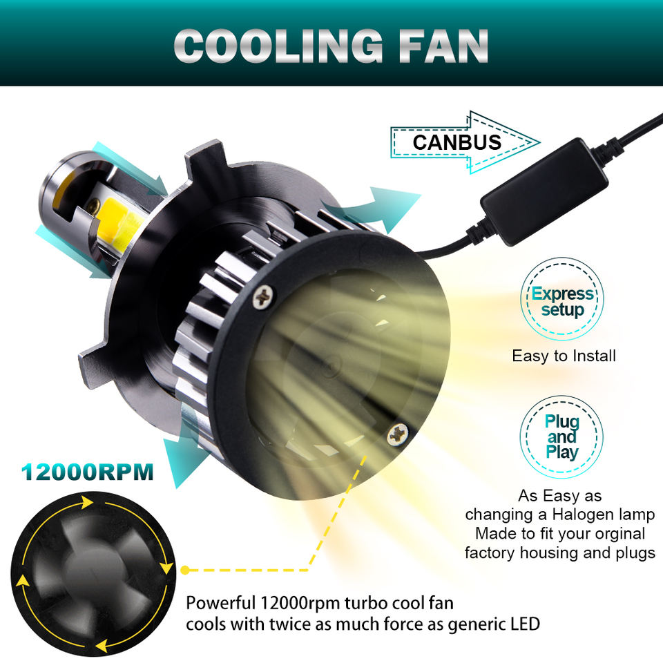 Faros LED con Ventilador de Refrigeración Canbus Gratuito, 16000lm, Luz Alta y Baja, Doble Color, Bi-LED H4 F2 COB H4 H7 H11 9005, Bombilla LED para Automóvil